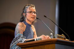 "Sookee ist Musikerin, Moderatorin und Aktivistin. Seit über 20 Jahren ist ihr künstlerisches Handeln immer auch in politische Kontexte eingebunden. Sie war eine der ersten Rapperinnen, die sich offen gegen Homophobie, Sexismus, Rassismus und Antisemitismus im deutschen HipHop einsetzte. Heute macht sie als Sukini auch Kindermusik und regt – nicht nur – die nächste Generation mit ihren Texten zum Nachdenken an. In verschiedenen Diskussionsformaten öffnet sie Räume und baut Brücken zwischen schwer vereinbaren Positionen, ohne sich selbst in den Mittelpunkt zu stellen.