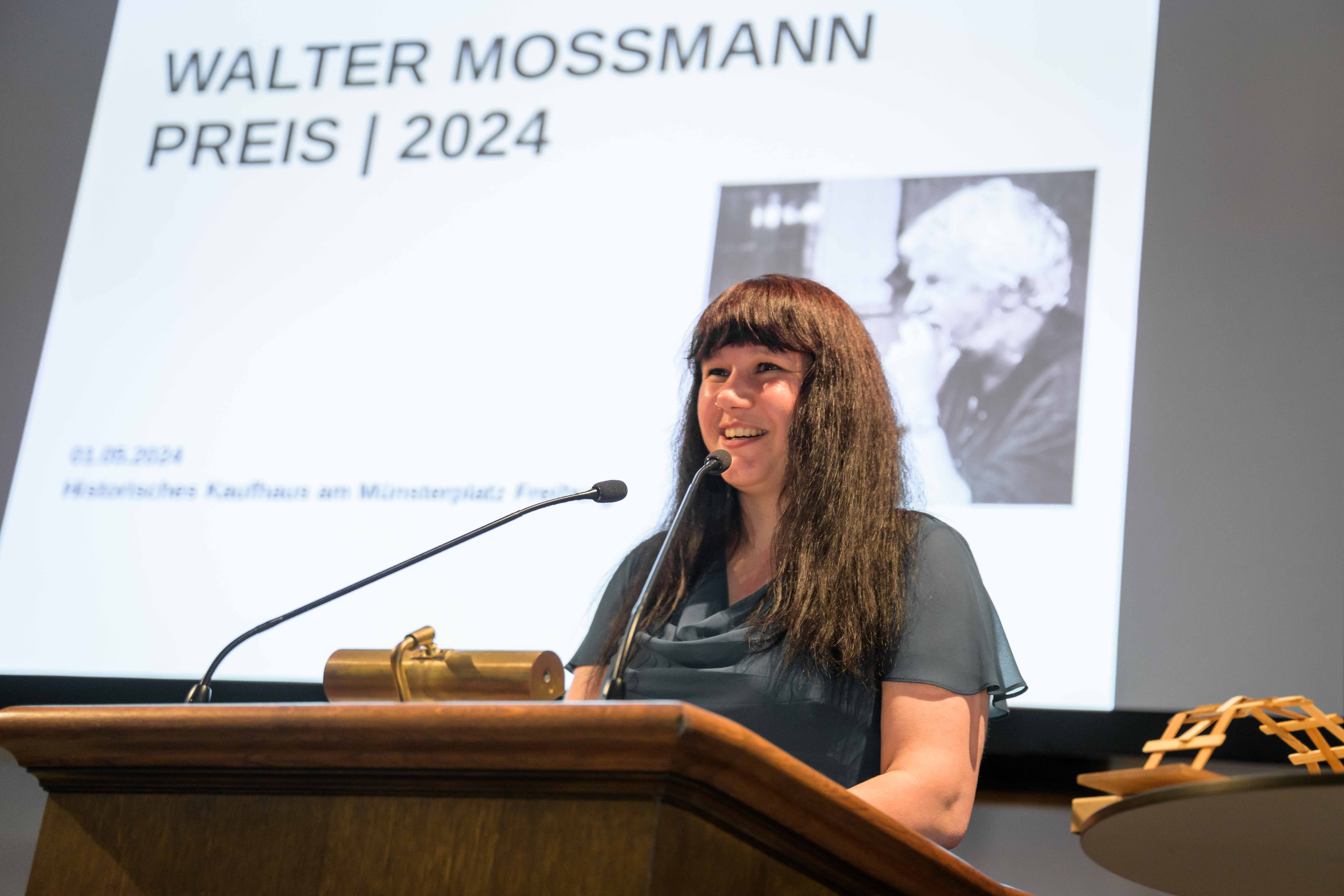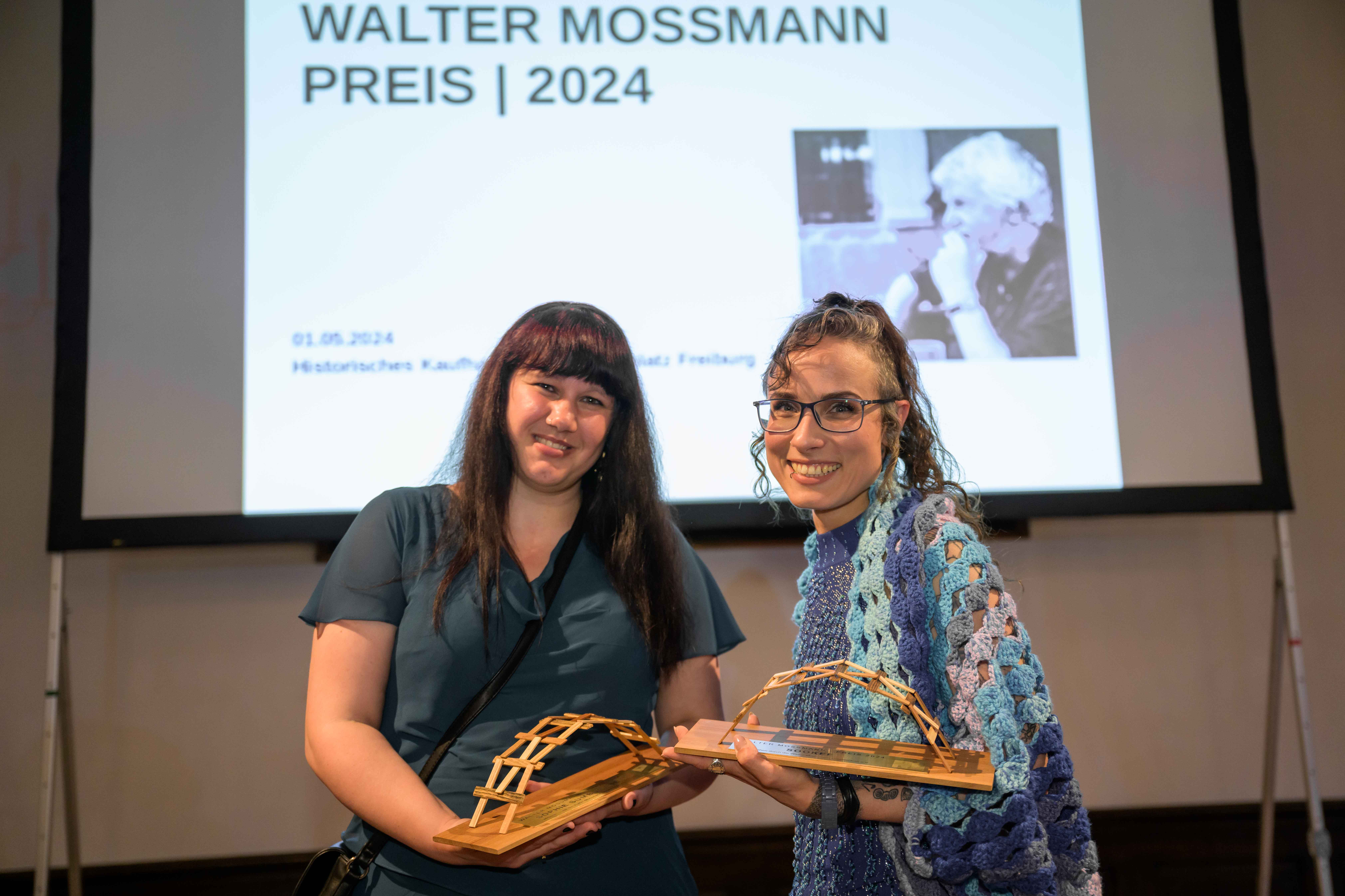 Die Walter Mossmann Gesellschaft konnte – mit Unterstützung der Stadt Freiburg – am 1. Mai 2024 erstmals den Walter Mossmann-Preis vergeben. Die Wahl des siebenköpfigen Kuratoriums fiel auf SOPHIE SUMBURANE, Autorin und Aktivistin, Potsdam und SOOKEE, politische Musikerin, Berlin. Die Preisverleihung fand im Historischen Kaufhaus der Stadt Freiburg statt.